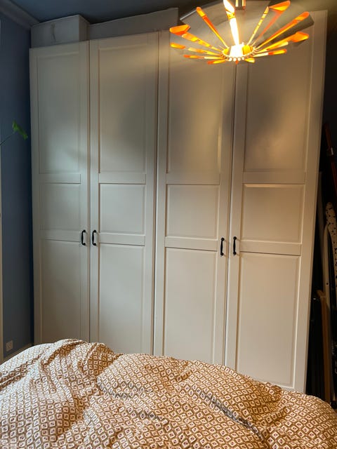 Stort hvidt skab med skydelåger