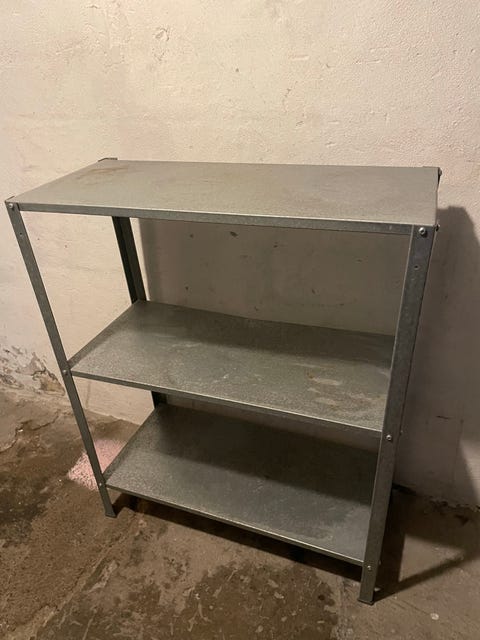 Sort stål reol på hjul