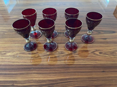 Røde bøhmiske portvins glas