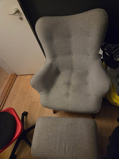 Grå lænestol som ny