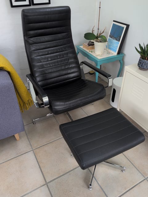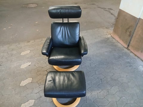 Sort læder hvilestol med fodstøtte