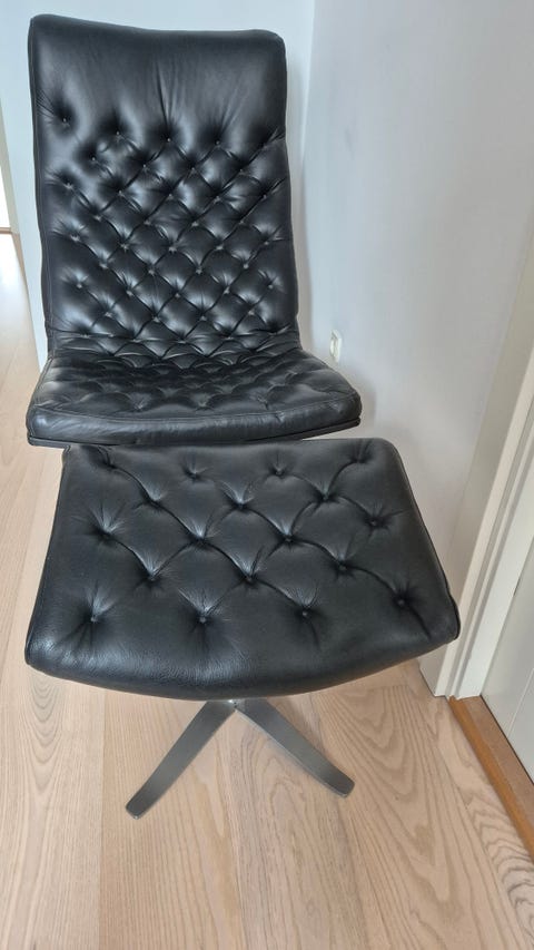 Nielaus sort læder loungestol