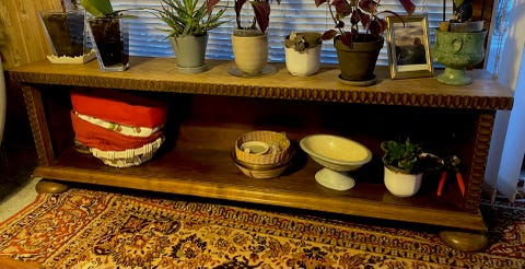 Lav antik reol til pyntegenstande