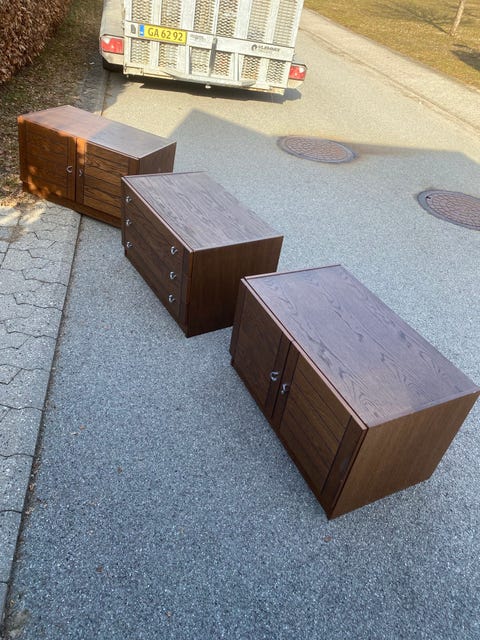 Sæt af 3 mahogni-kommoder/skabe