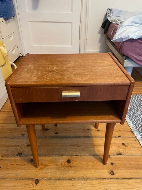 Find et brugt natbord, der matcher stilen i dit soveværelse