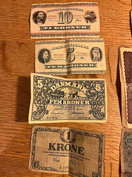 Samling af gamle pengesedler (Dansk)
