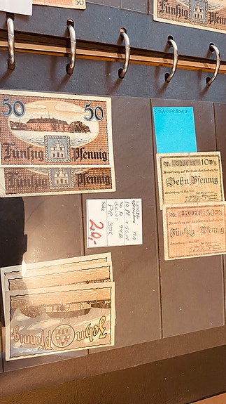 Samling af gamle pengesedler og kuverter
