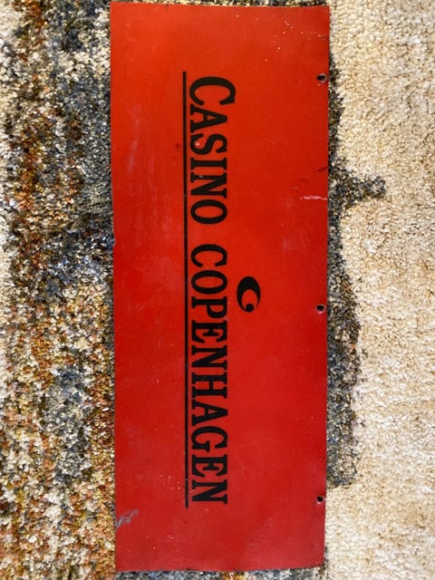 GAMEL STRØM SKABS SKILDT :