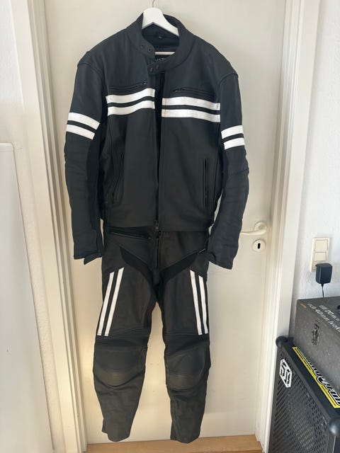 Held motorcykel læderdragt sort/hvid