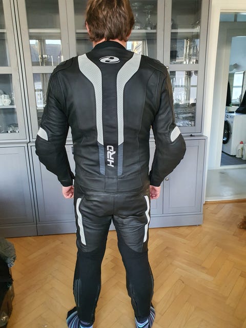 Held motorcykel læderdragt sort/hvid