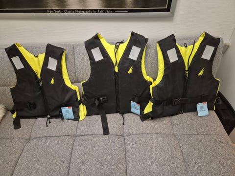 En sejlers sikkerhedsudstyr omfatter naturligvis redningsveste, flydeveste og redningskranse. Oppustelige veste er lette og kompakte, og derfor praktiske at bruge til fiskeri. Nødraketter, nødblus og andet signaludstyr er også vigtigt sikkerhedsudstyr til båden. Meget tilbehør til sikker sejlads kan nemt købes brugt – når du gennemser annonce(r)ne, skal du selvfølgelig være opmærksom på produktets stand.