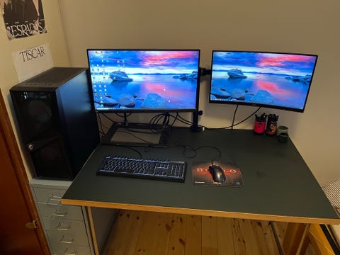 Gaming setup: Pc med 2x skærme