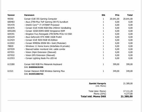 Kraftig gamer PC med 4090 RTX