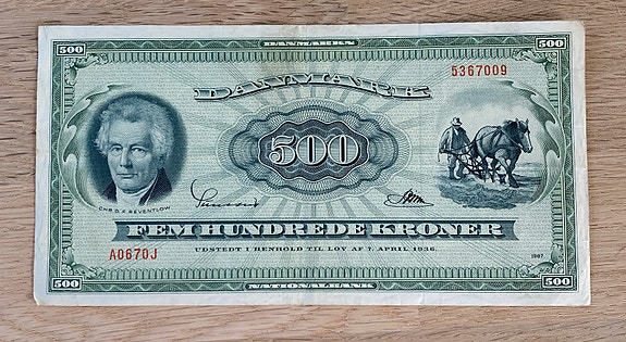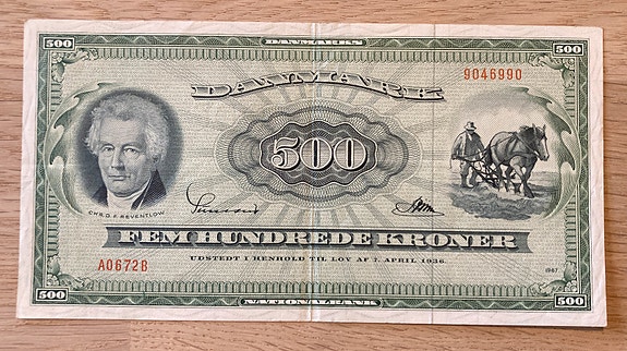 DANSK 500 KR. SEDDEL A4 FRA ÅR 2000