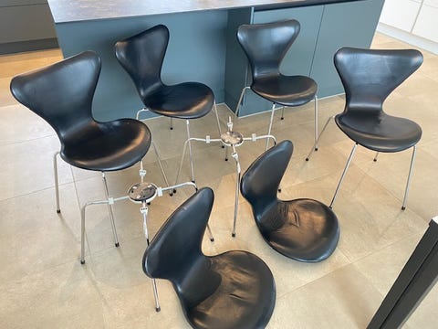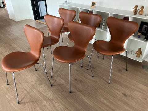 Arne Jacobsen 3207 Syver Armstole – Nypolstret i Cognac Læder & Sort Stel 7er
