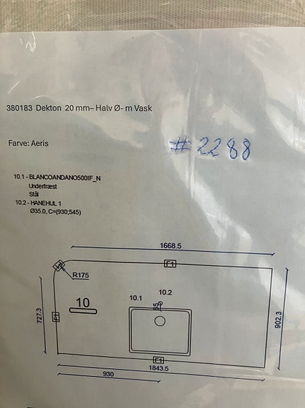 Dekton 20mm halv ø m/vask (380183)