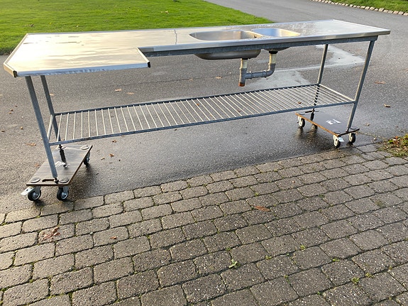 Rustfri vinkel bord med dobbelt vask