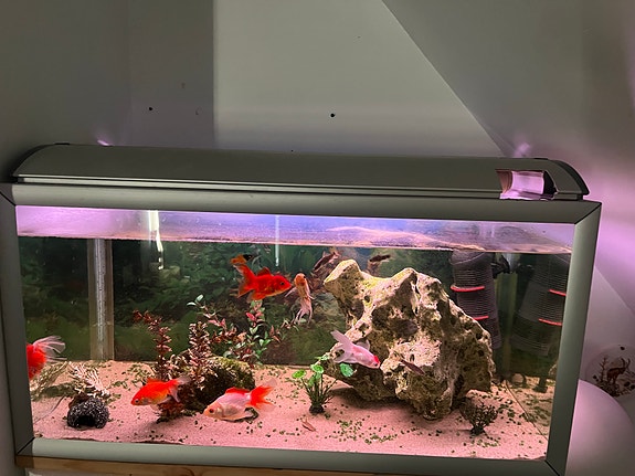 Akvarie 240 l med diverse guldfisk