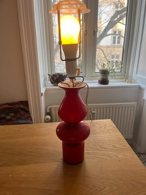 Antik bordlampe i træ