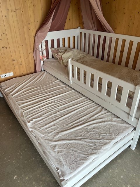 Børneseng med skuffer og udtræksseng