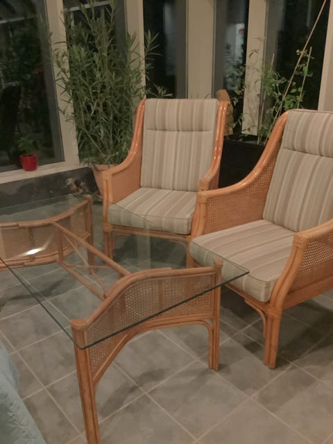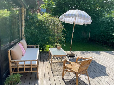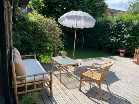 Bambusbord og bambus drejestol
