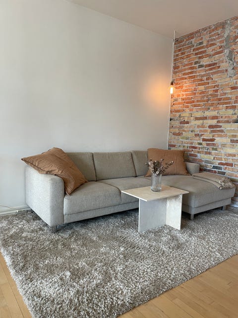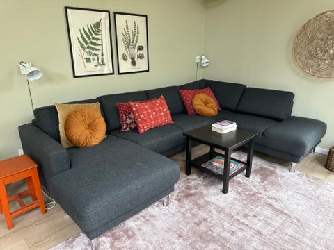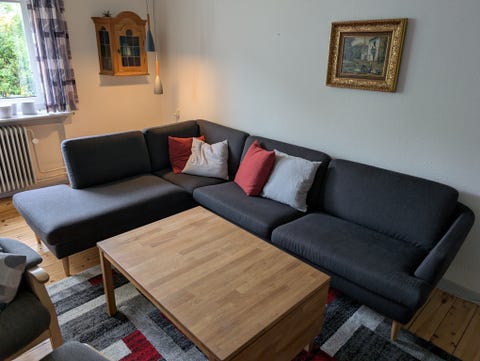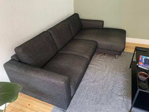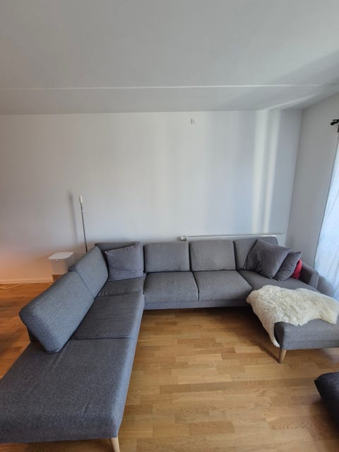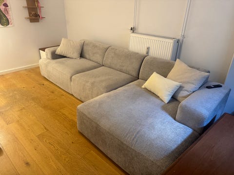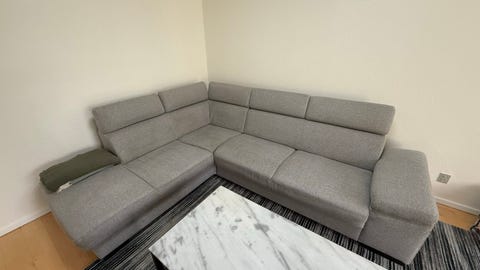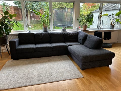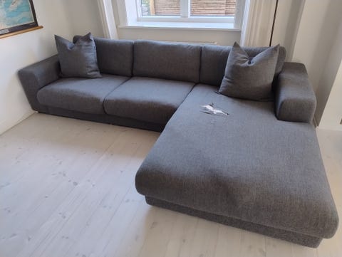 Stor grå sofa med chaiselong