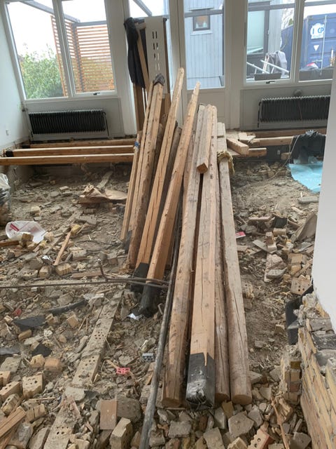 Brugt tømmer og bjælker i træ