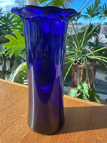 Blå glasvase | Til salg