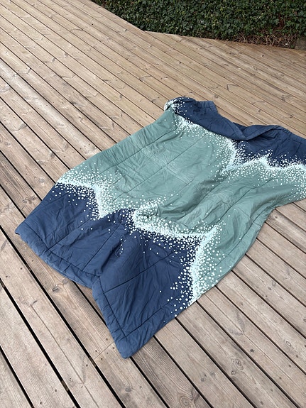 Smukt quiltet tæppe blå