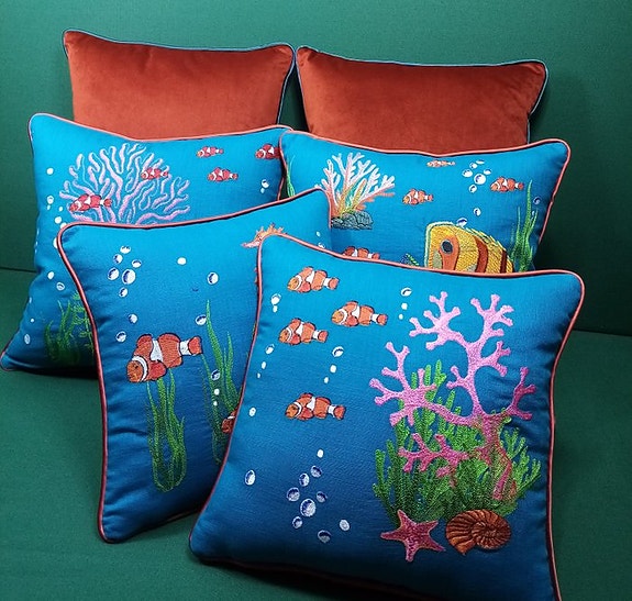 Nakkepuder i blå og grøn