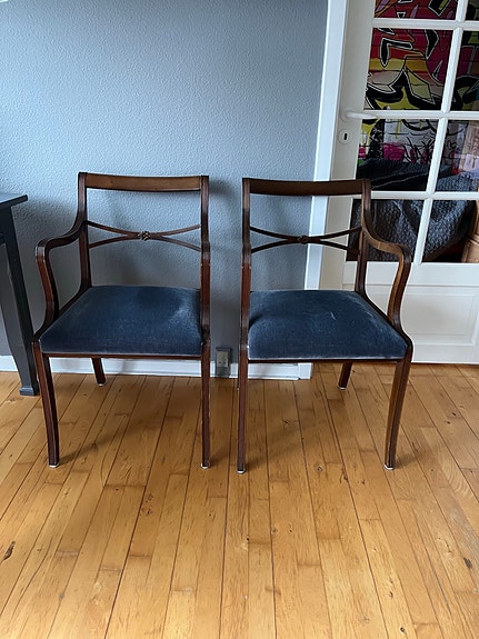 Blå velour spisebordsstole