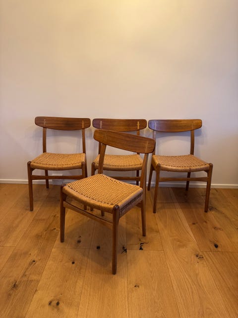 4 hvide klassiske CH24 Y-Stole.. Alder omkring 7 år... Sælges grundet flytning