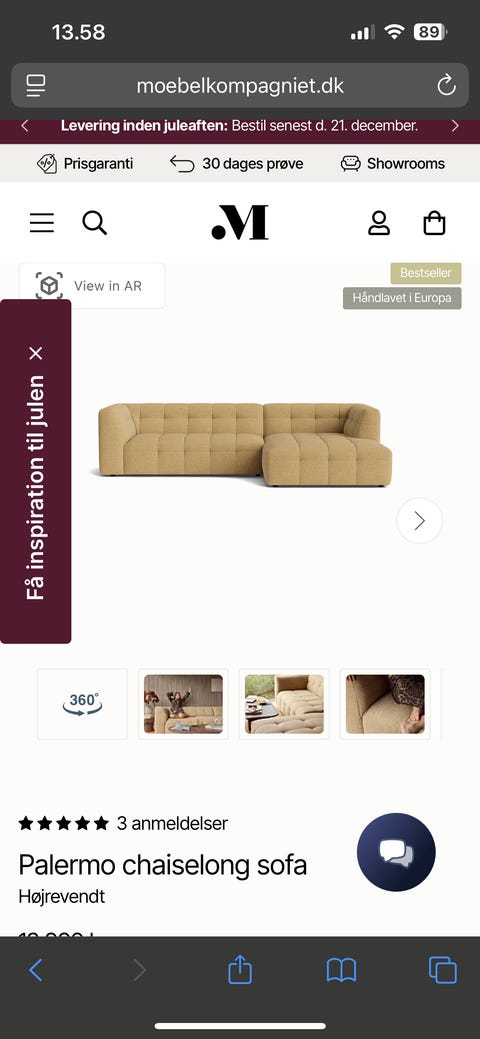3 personers sofa med chaiselong
