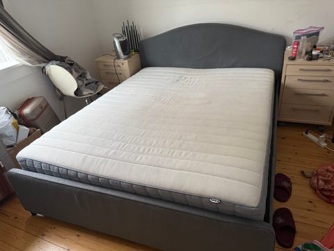 Seng med madras grå