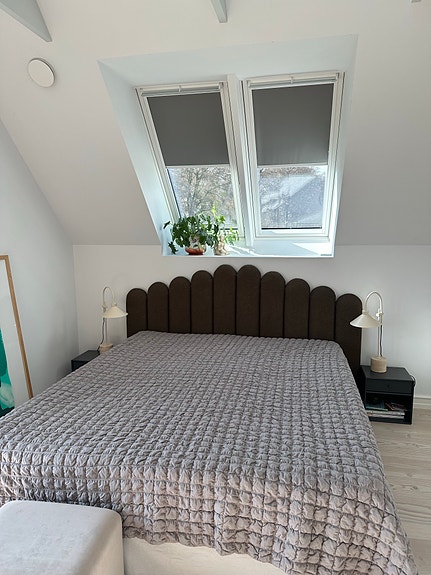 Mørkegrå velour sengegavl