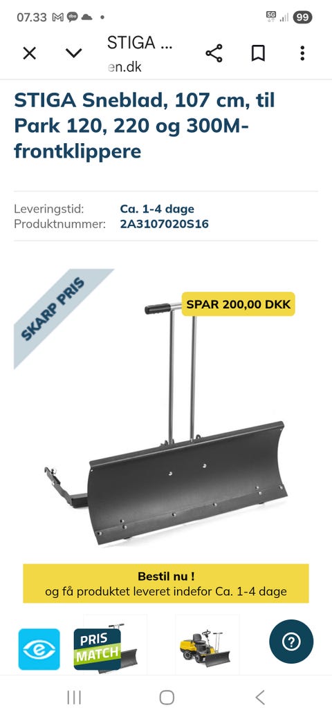 Dozerblad til Stiga frontklipper