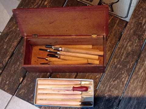 Træ drejebænk med diverse tilbehør