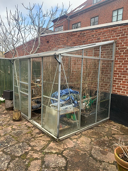 EN GL TRÆ TRILLEBØR MED JERN HJUL.
