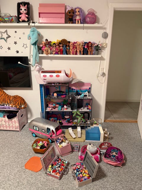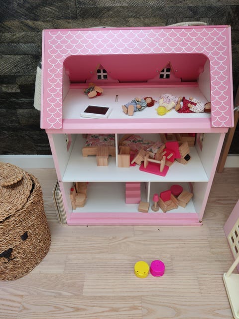 Dukkehus med møbler og dukker