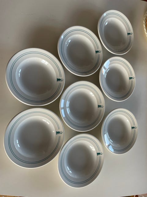 Bing & Grøndahl Tallerken sæt med dybe tallerkener og serveringsfad i porcelæn
