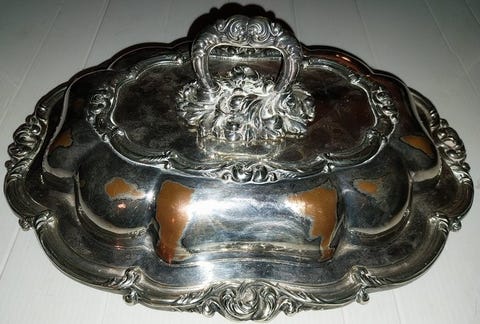 Engelsk ovalt sølvplet fad