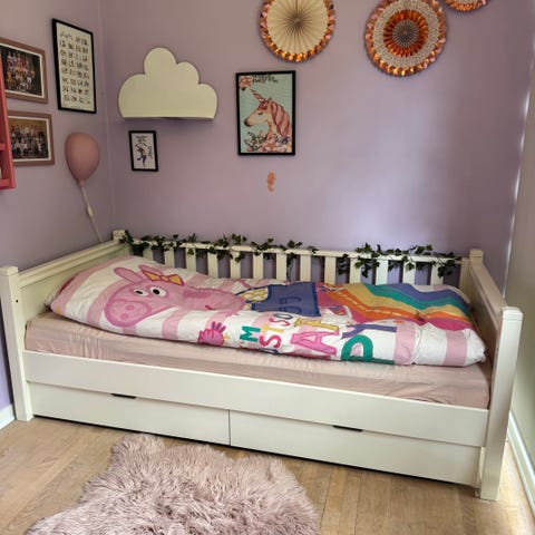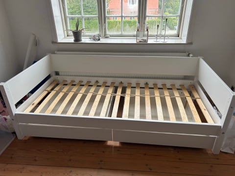 Børneseng med rulleskuffer