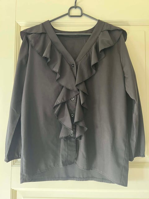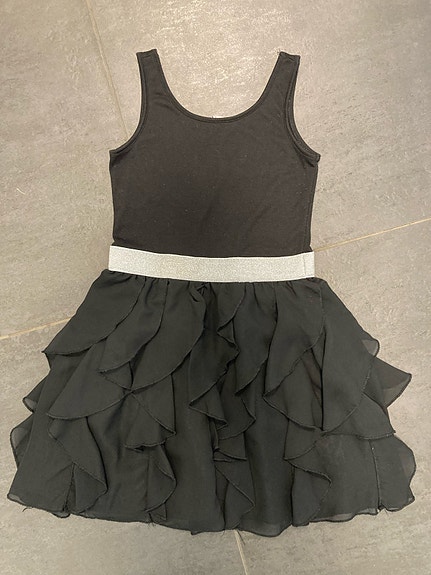 Sort med sølv og flæser