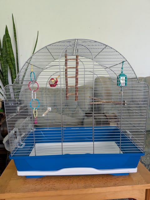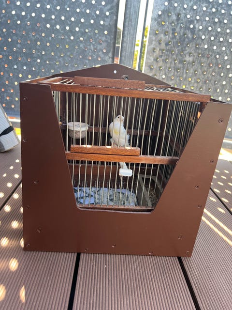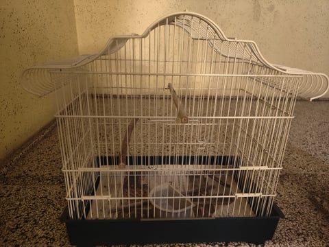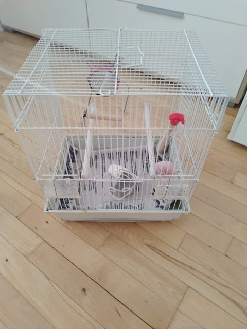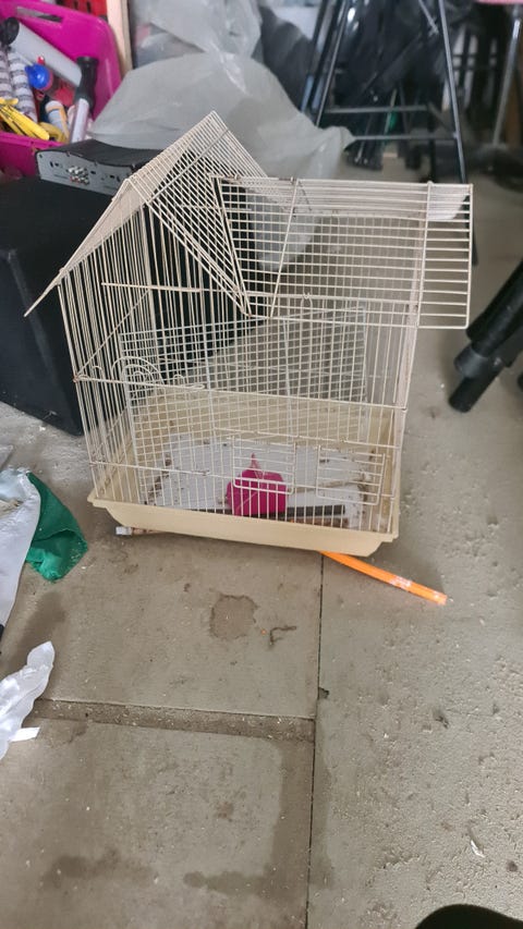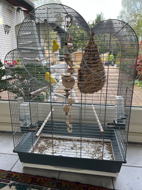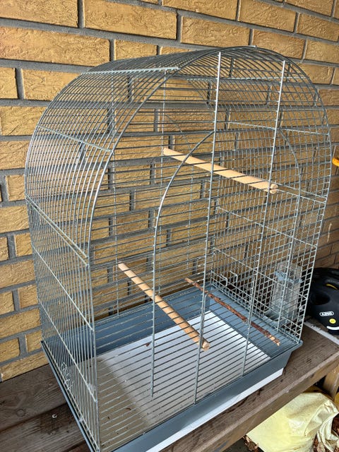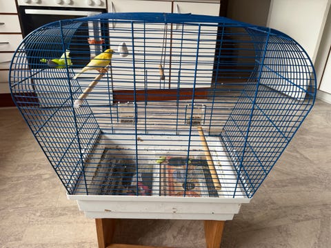 Bur med fuglene og alt udstyr