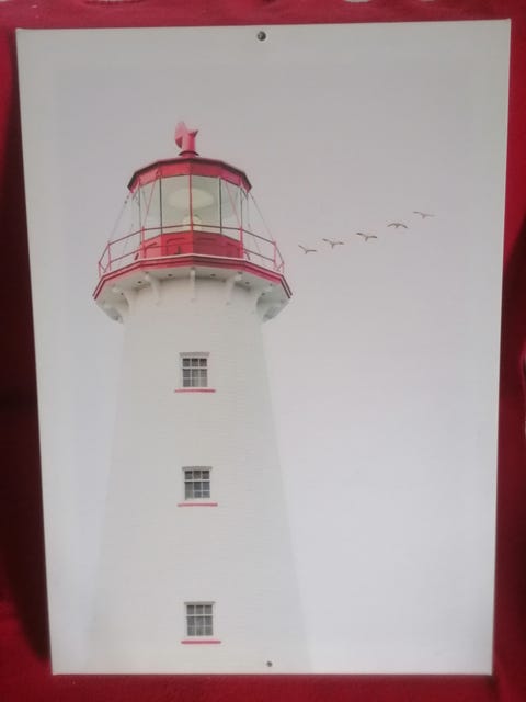 Maleri med skib og fyrtårn