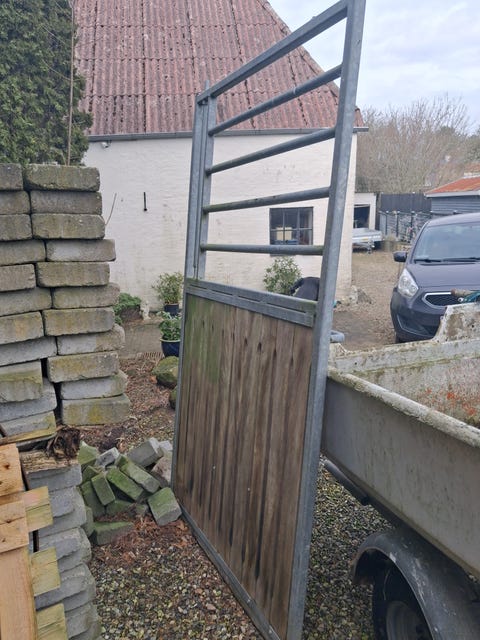 Galvaniseret metalhegn med låge