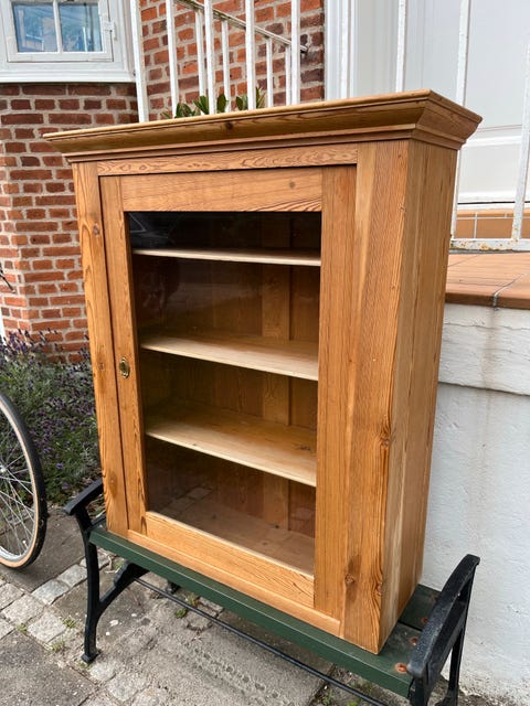 Smukt gammelt Vitrineskab i fyrretræ