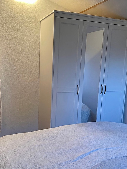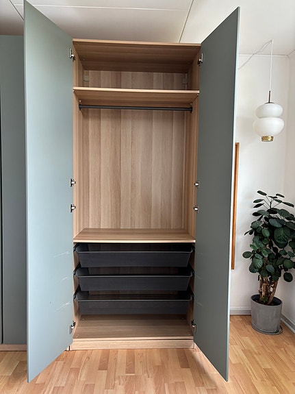 Garderobeskab med skydedøre.