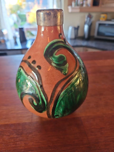Grøn vase med tin kant