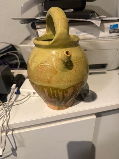 Fajancekande i ravfarvet glasur